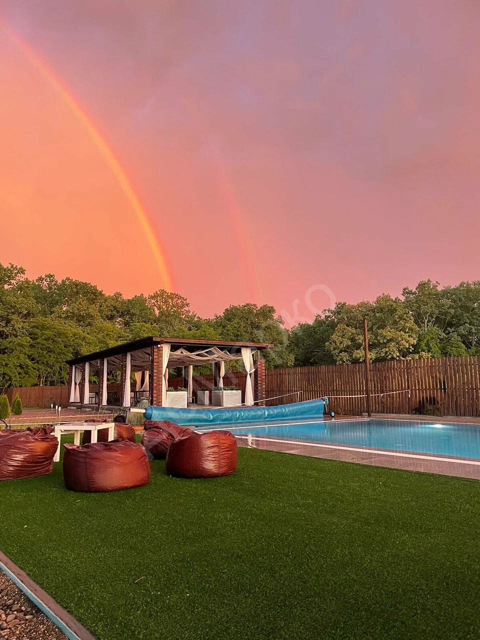 В результате бассейн стал центром гостиничного отдыха и повысил комфорт проживания на участке.