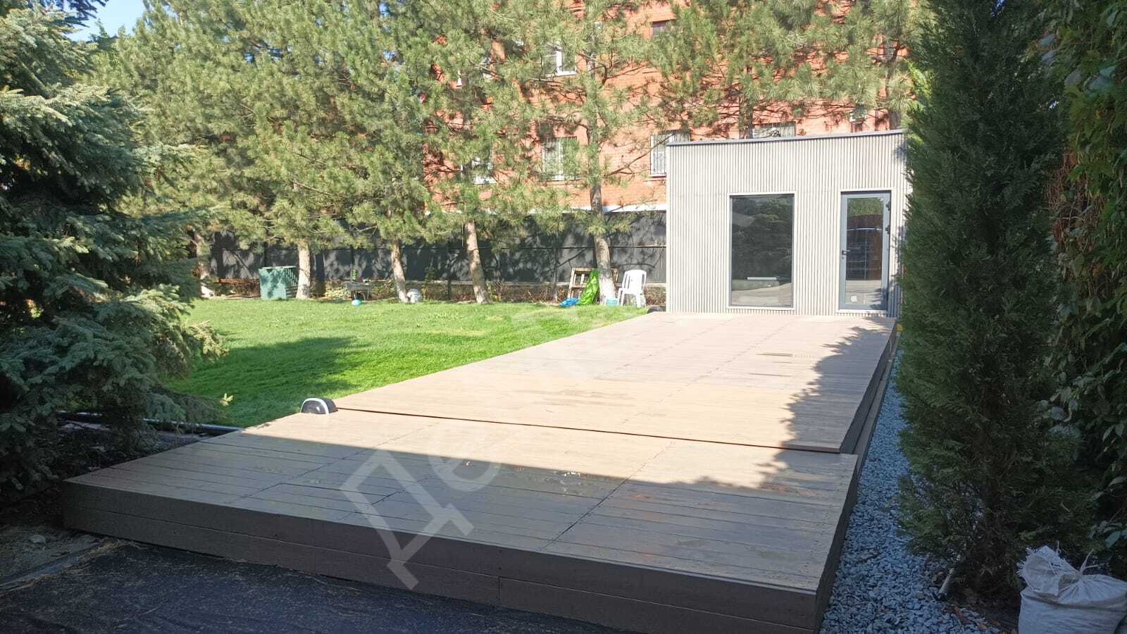 В результате заказчик получил удобное пространство отдыха, которое не требует сложного ухода и подходит для круглогодичного использования.