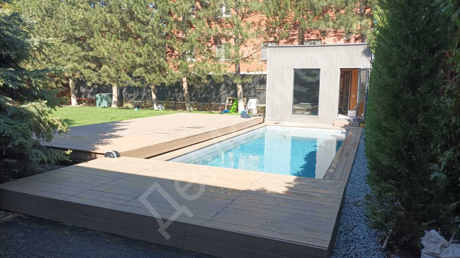 Частная резиденция. Бетонный бассейн 8,2×3,2 со сдвижной платформой.