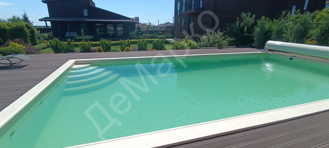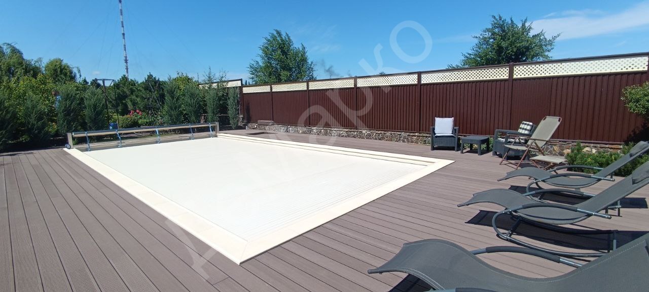 Мы реализовали систему автоматического контроля воды с безхлорной дезинфекцией, автоматическую промывку фильтра и долив воды. Для снижения теплопотерь и защиты от загрязнений установлено автоматическое жалюзийное покрытие.