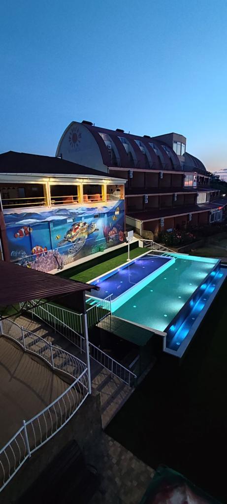 Бассейн оснащён дополнительной детской чашей с гейзером и водяной завесой , что расширяет функциональность объекта и повышает привлекательность для гостей.