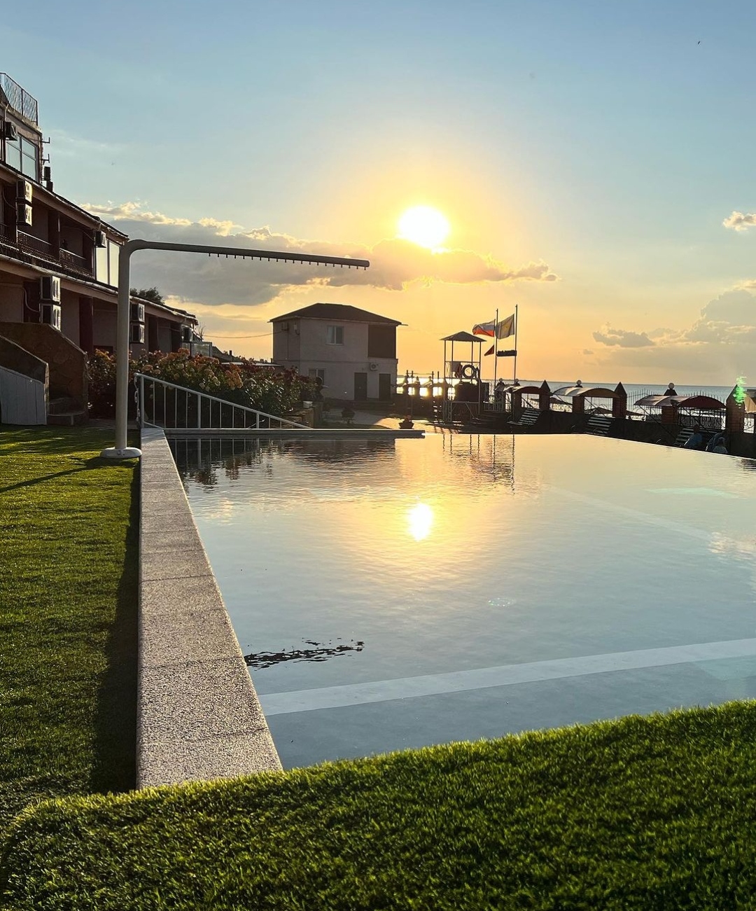 Большой переливной бассейн для гостиничного комплекса, спроектированный для интенсивной коммерческой эксплуатации и круглосуточной стабильной работы. Переливная система Infinity формирует эффект «бесконечной воды» и поддерживает постоянный уровень зеркала при высокой загрузке.