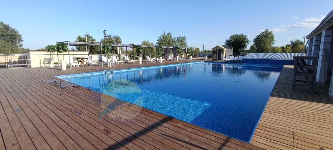 Большой открытый бассейн 20 м х 10 м стал настоящей точкой притяжения для гостей базы — здесь отдыхают, купаются, загорают и проводят время всей семьёй. Пространство создаёт ощущение курорта и повышает привлекательность объекта для туристов. Переливная система Infinity формирует эффект бесконечной воды и поддерживает идеальный уровень зеркала. Автоматизированные системы очистки и фильтрации обеспечивают стабильную прозрачность воды даже при высокой загрузке, а тепловой насос позволяет комфортно пользоваться бассейном в расширенный сезон.